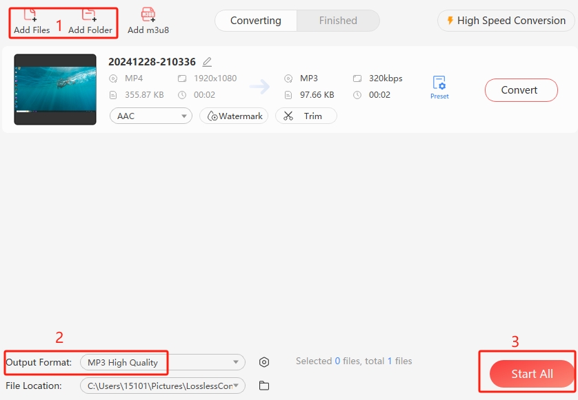 How to convert video to audio in LosslessConverter